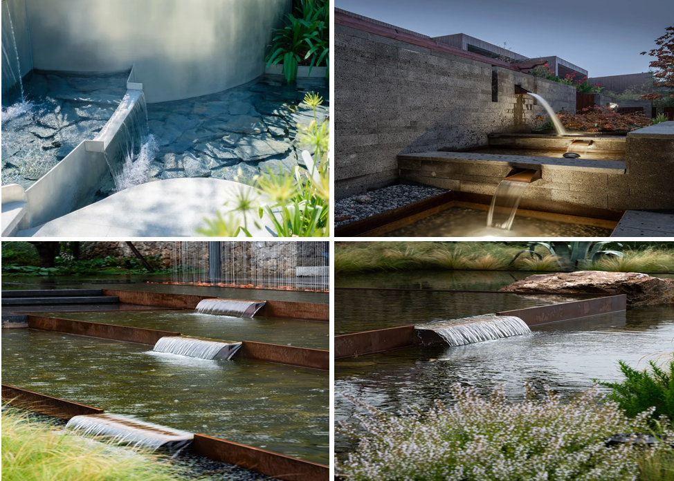 1.隱蔽式:將出水口隱藏在景觀環境之中,讓水流呈現自然瀑布的形狀。