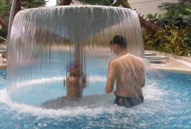利用水傘四周下落的強勁水流沖擊上半身,特別是頸部,屬于柔性壓力。也可以坐于傘下,呼吸富含氧氣的水霧狀清新空氣,使思緒更加清醒,周密。而且,透過水簾看外面的世界別有一番風味。